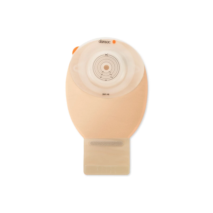 Dansac NovaLife TRE 1 Open Midi Convex, egyrészes, űríthető, testszínű, ablakos sztómazsák, méretre kivágható 15-37 mm, 380 ml, vízlepergető borítással.