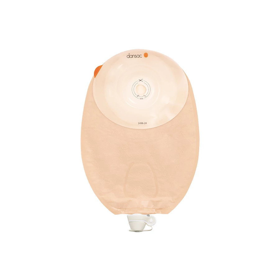 Dansac NovaLife TRE 1 Urostomy Soft Convex, egyrészes, testszínű, ablakos sztómazsák, méretre kivágható 15-34 mm, 245 ml, vízlepergető borítással.