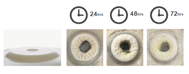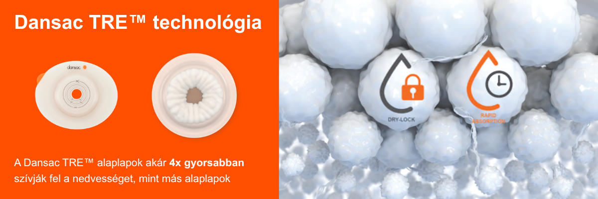 A TRE™ tapadófelületek nedvesség hatására a sztóma körül kitágulnak, így maximalizálják a bőrrel való érintkezést, kitöltik az apró réseket, és egyedi zárást hoznak létre. Ez segít megelőzni a szivárgást és a perisztomális bőrproblémák kialakulását.