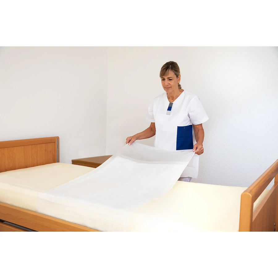 Egyszer használatos alátét cellulóz pelyhekből álló nedvszívó maggal, higiénikus ápolást és extra védelmet nyújt. Vízálló és csúszásmentes fólia hátoldal a tökéletes szivárgás elleni védelem érdekében. Felső oldala puha, hátsó oldala textil-szerű a kényelem és diszkréció érdekében. Előhajtogatva és tömörítve (kivéve 40x60cm változat) az egyszerű használat és tárolás érdekében. Különféle nedvszívókapacitásban és méretekben kapható. Alkalmas az ágy, szék, bútorok és egyéb felületek védeleméhez. A szárnyas változat különösen alkalmas az ágyban gyakran nyugtalan személyek számára.
